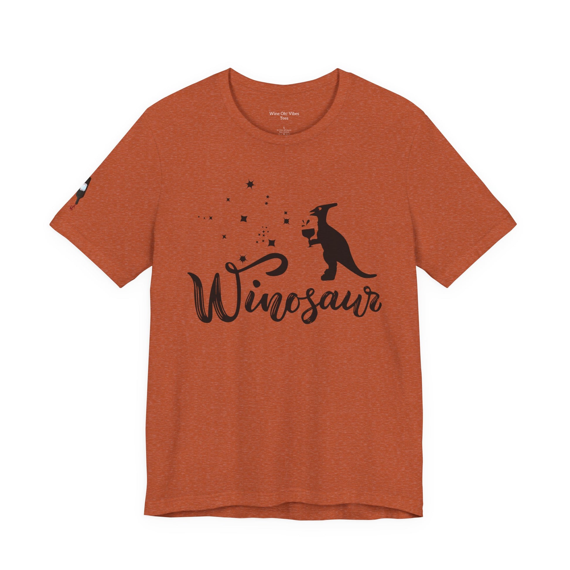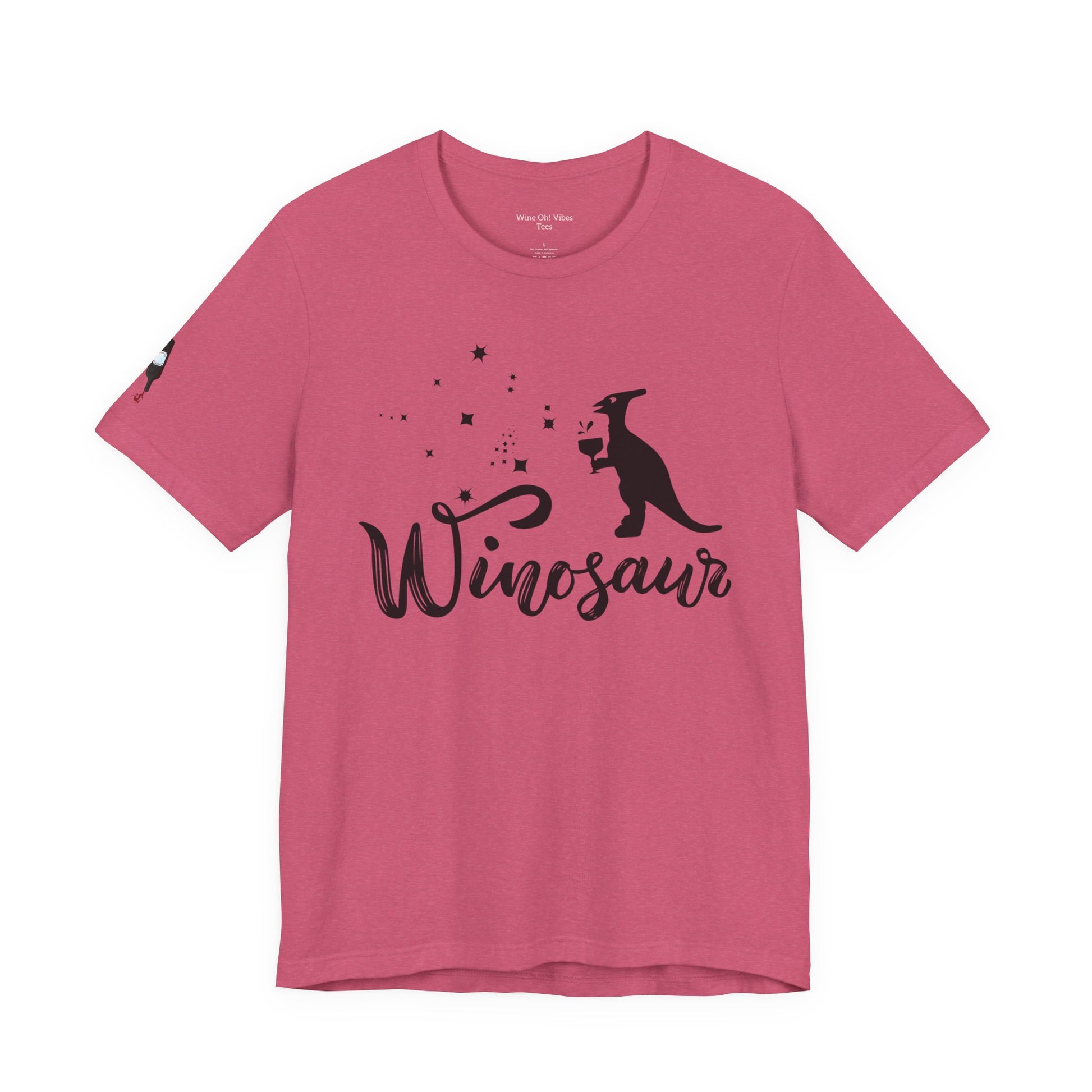 Meet your new favorite tee—the Winosaur! Crafted from soft, durable cotton with vibrant printing that stays bold wash after wash, this unisex shirt is built to last. The ribbed knit collar maintains its crisp structure, while tapered shoulders mold to your frame the more you wear it. Reinforced double-stitched side seams lock everything in place, so your shirt keeps its shape through countless adventures. Whether you're a wine lover or just love comfort, this reliable everyday essential will quickly become the go-to piece you reach for again and again.